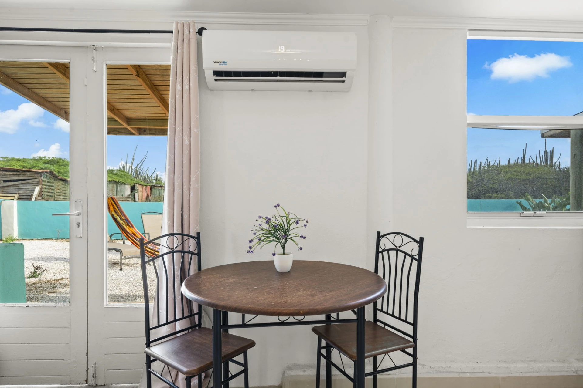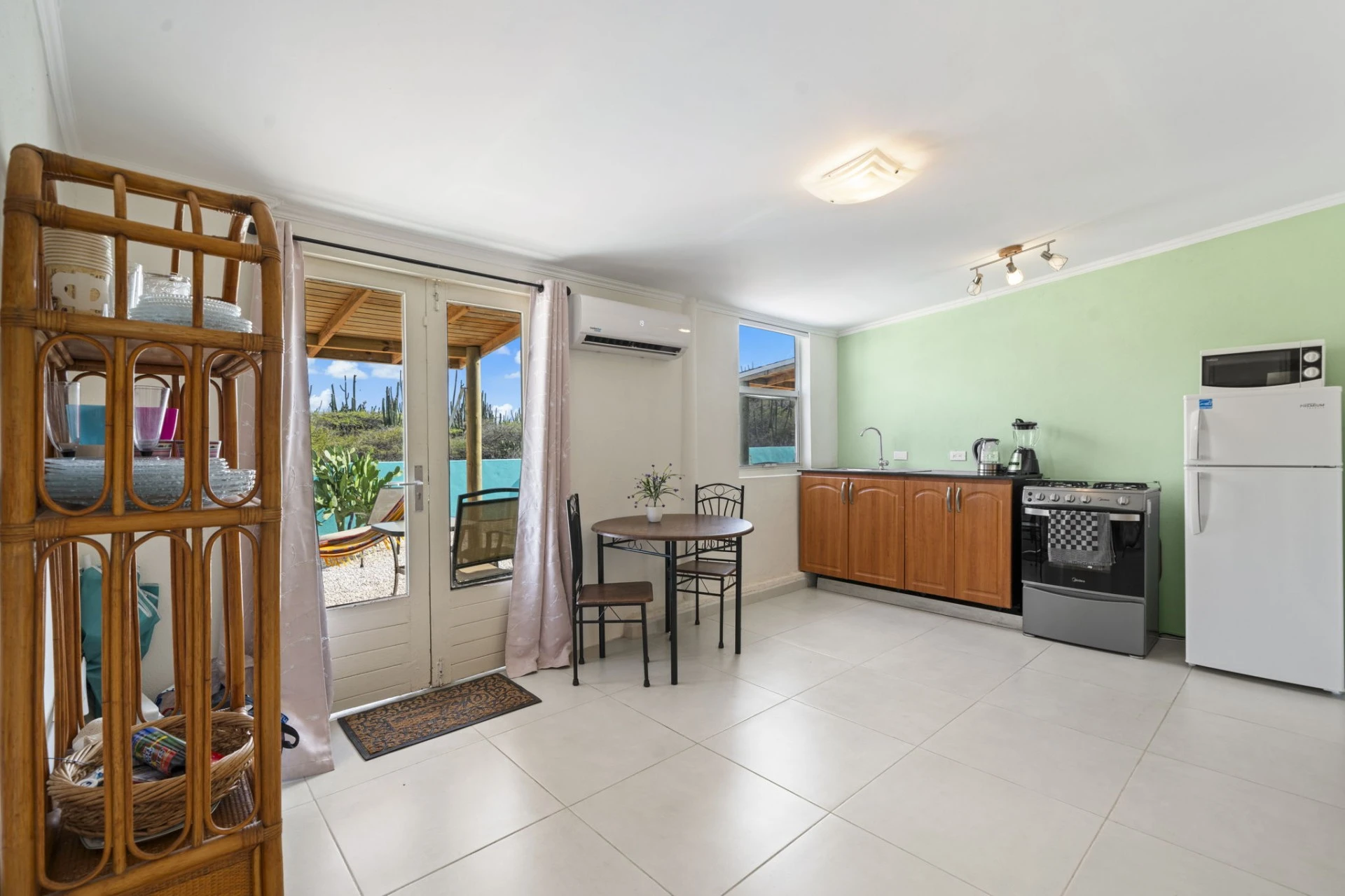 Discover comfort and convenience in this beautifully furnished one-bedroom, one-bathroom apartment located in the peaceful neighborhood of Seroe Janchi. Just minutes away from Aruba’s top hotels, the hospital, and downtown Oranjestad, this apartment offers the perfect blend of traditional Aruban design with a modern twist.