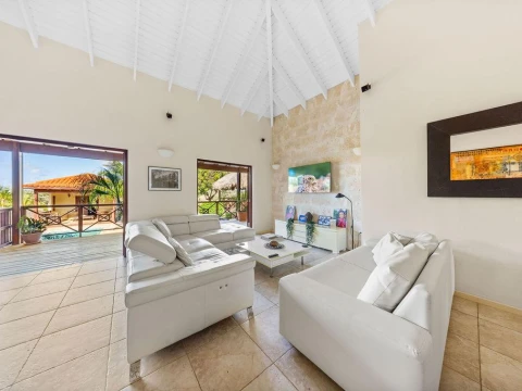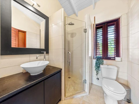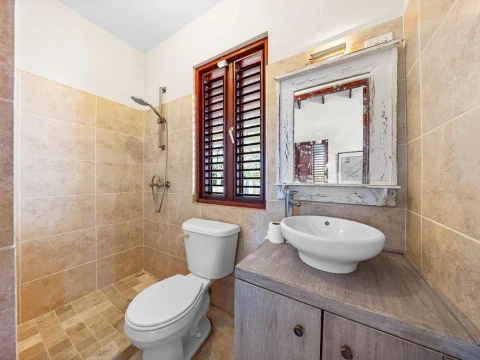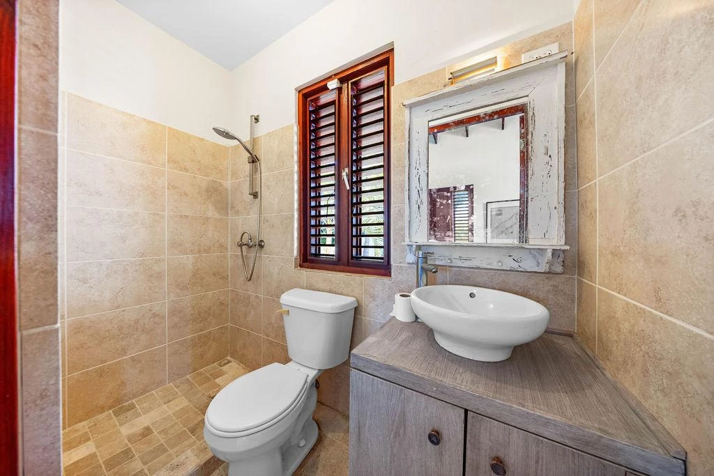 The main residence features three generously sized bedrooms and two meticulously designed bathrooms, offering ample space for you and your family. Each room is thoughtfully crafted to provide the ultimate in comfort, with elegant finishes, an open-concept living area, and large windows that allow natural light to fill every corner of the home. The seamless flow between the indoor and outdoor spaces ensures that you can enjoy the island’s beauty from every angle.