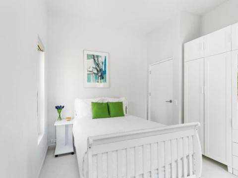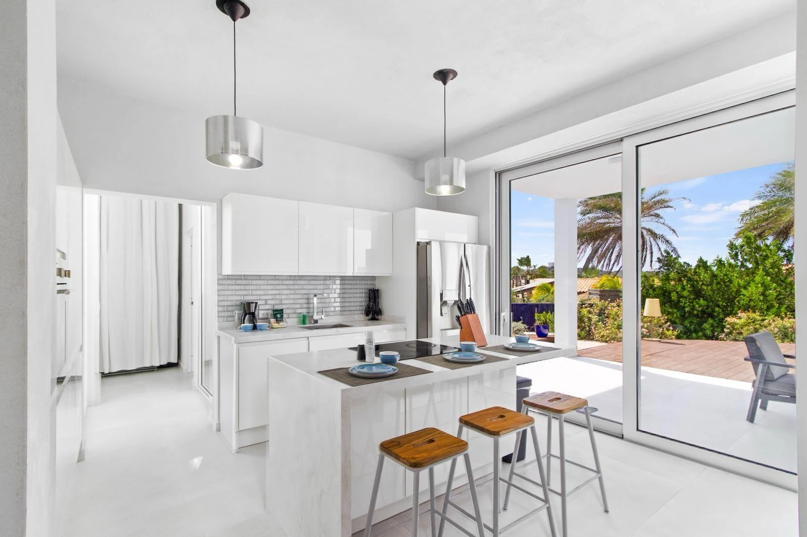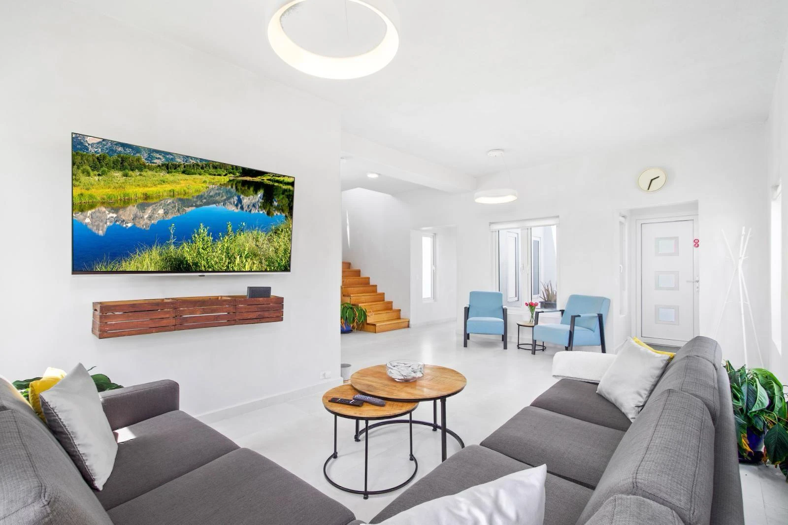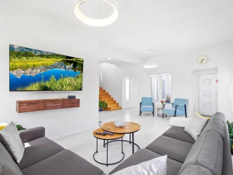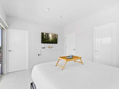 Upon entering, you are welcomed into a bright and expansive living area that seamlessly integrates with a fully equipped modern kitchen. High-end appliances, ample counter space, and a functional layout make everyday cooking and entertaining effortless. The adjacent dining area provides the perfect setting for family meals or hosting guests.
